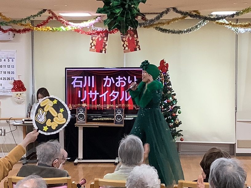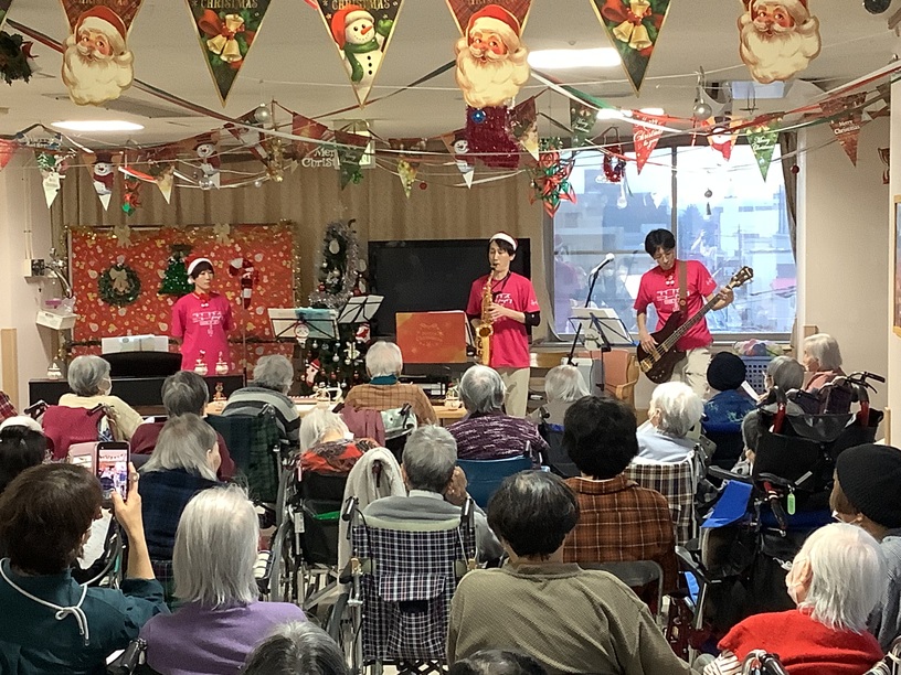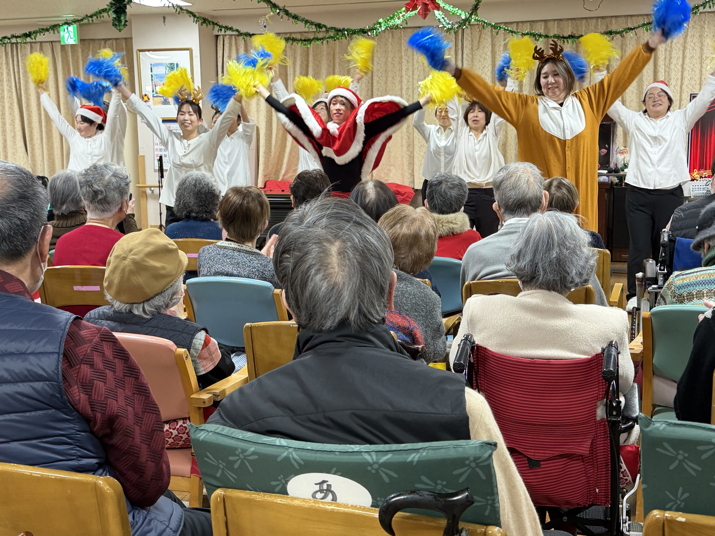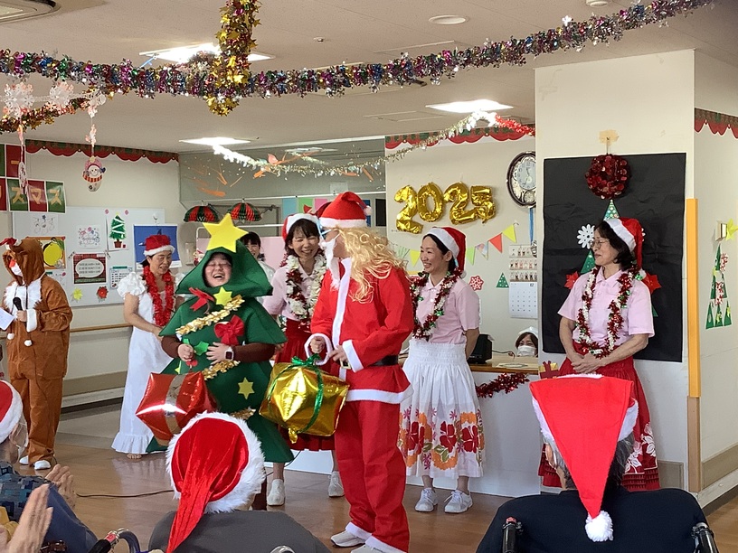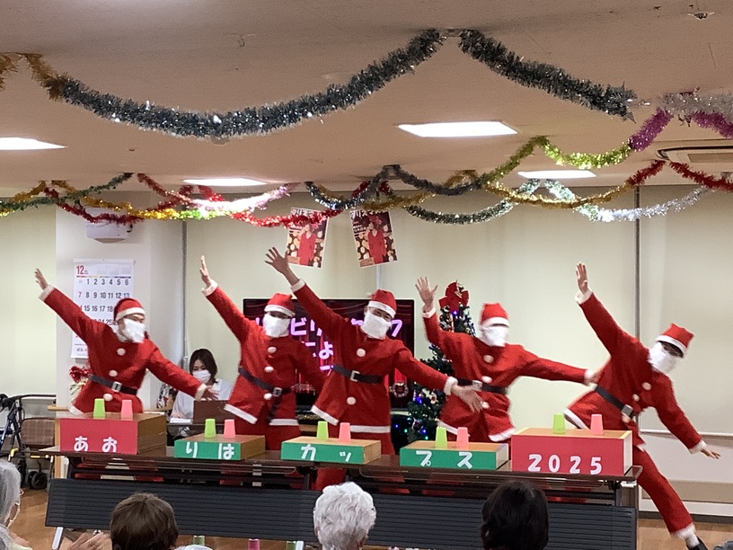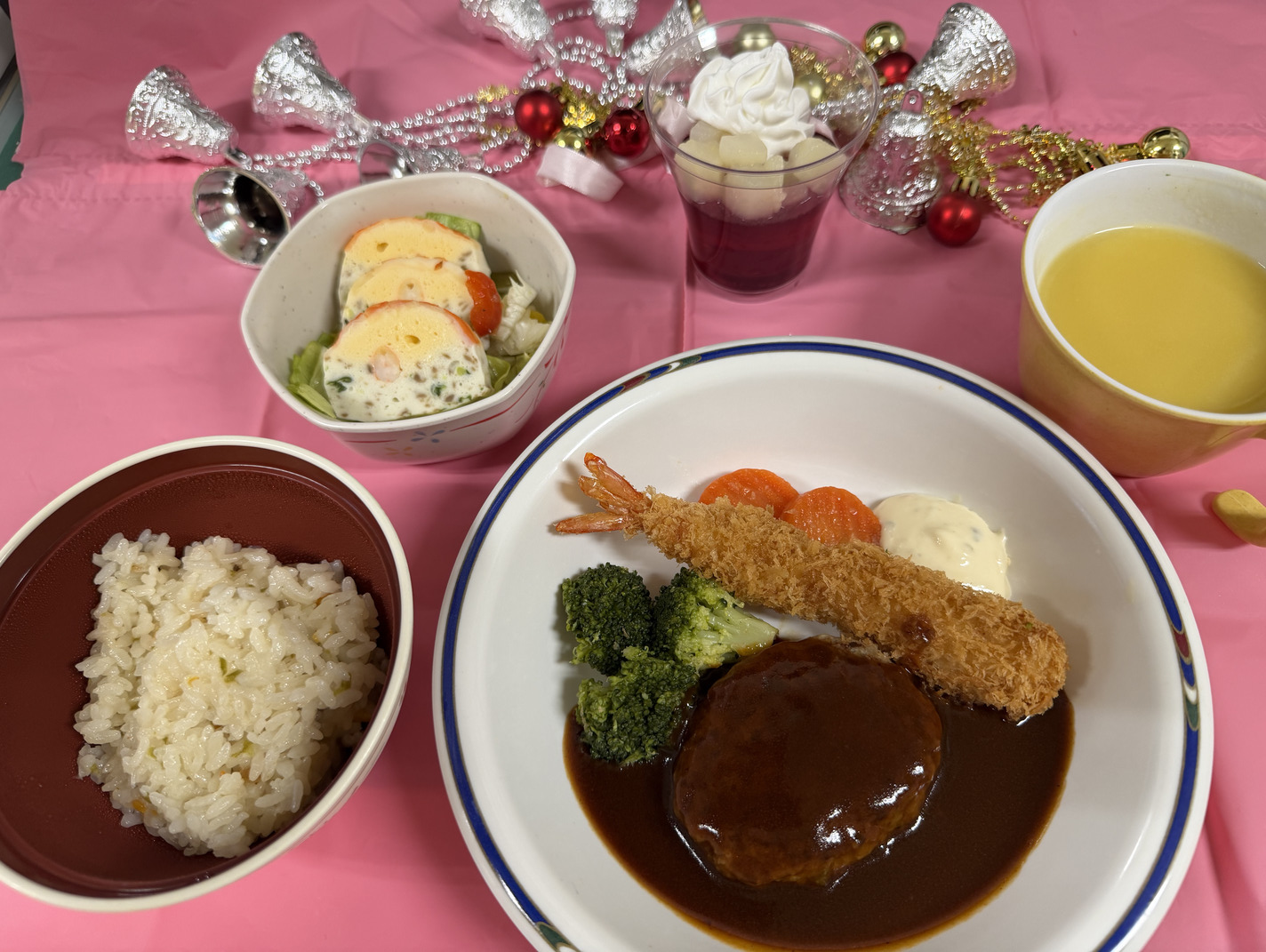 【国立あおやぎ苑】 クリスマス会開催 2025年12月26日(金) 令和7年 国立あおやぎ苑 クリスマス会開催 12月23,24日の2日間にわたって開催されました! 今年は、久し振りに家族同伴で行われ、各フロア多くの方々が来苑され楽しんで頂きました。 通所の歌姫登場! 本館通所 リハビリ部 縄文棟通所 縄文棟4階 本館4階 クリスマス会の食事