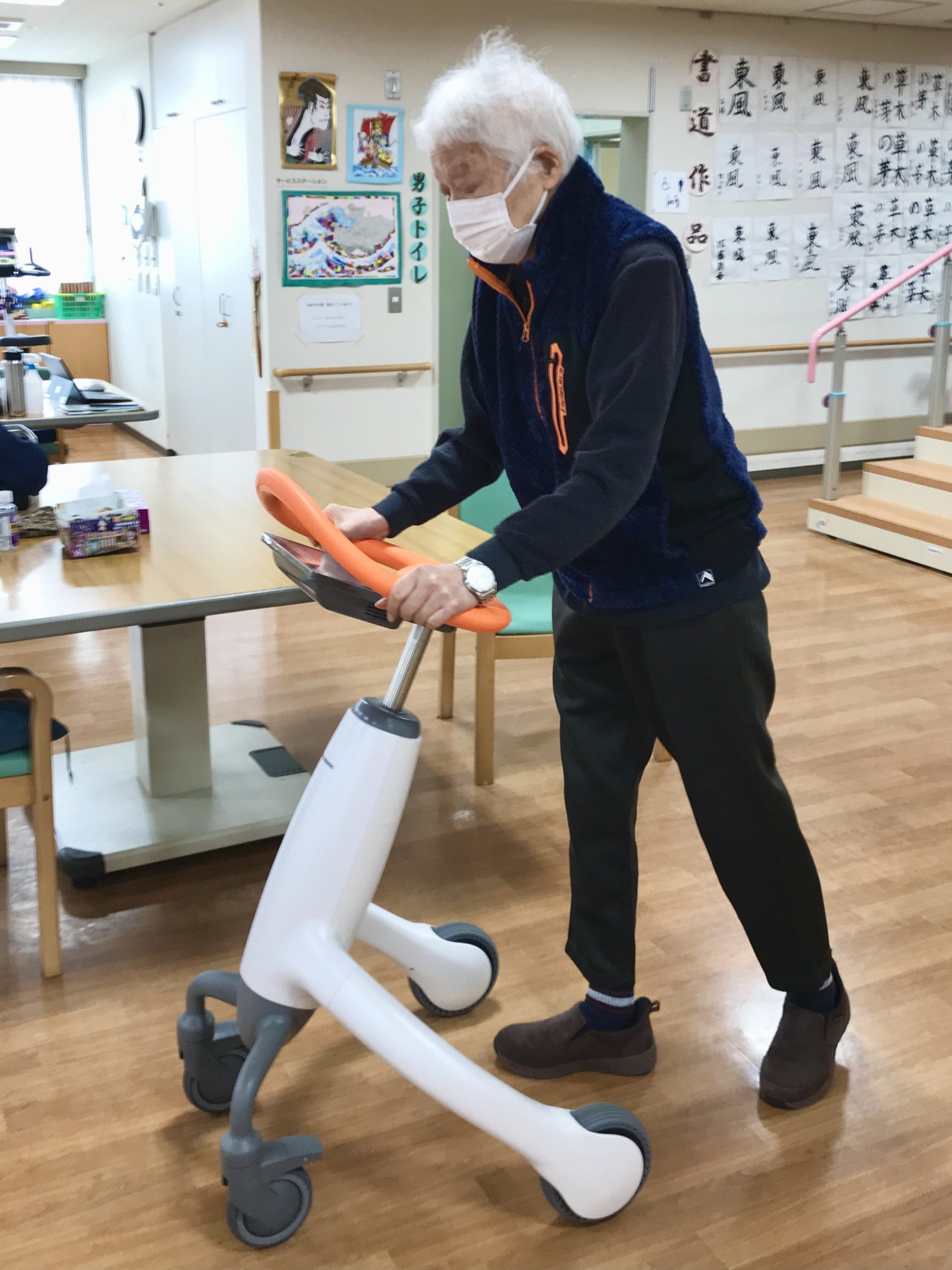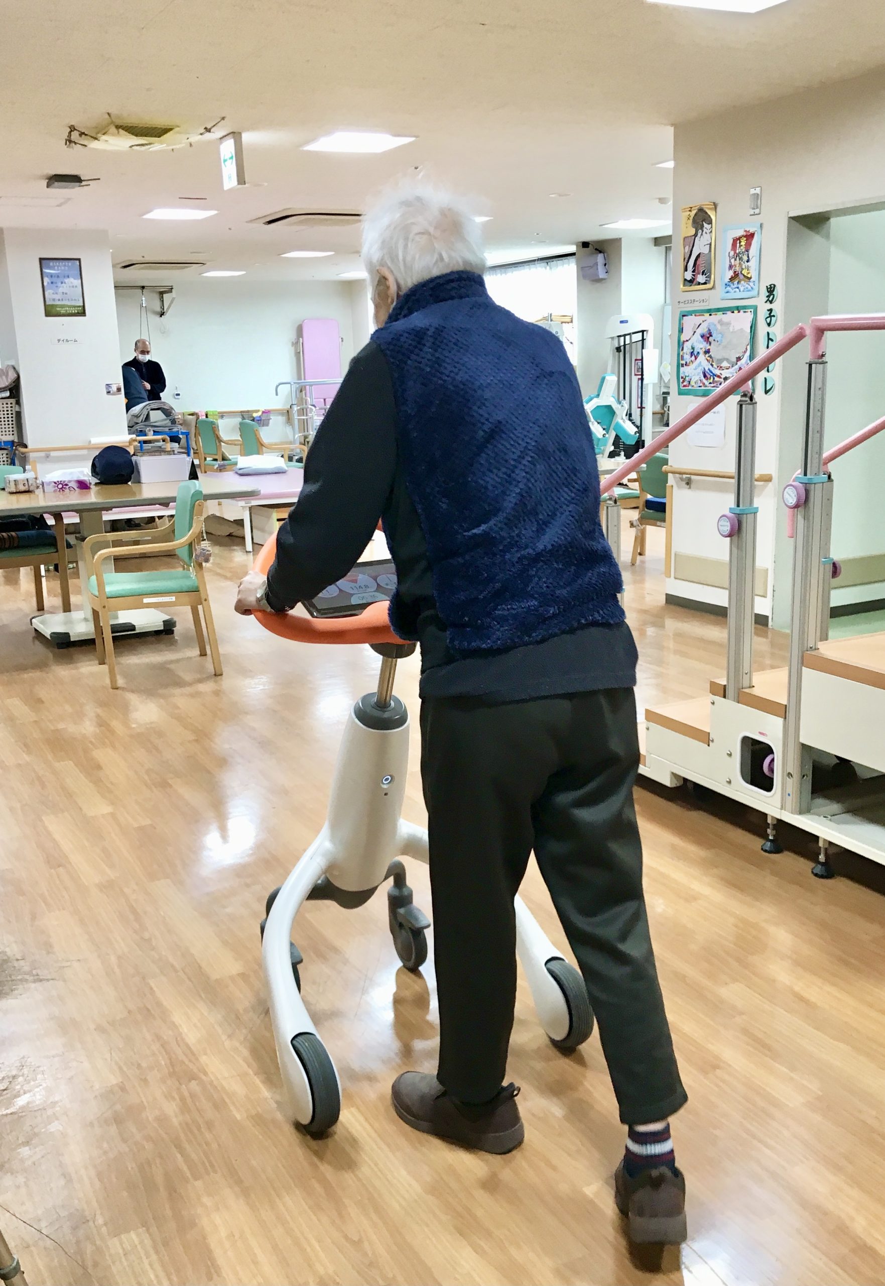 今回は2台導入しました。現在は主に1階デイケアで活用していますが、入所されている方ももちろんご利用いただけます。少し身体を動かしてみようかな、歩く力を保ちたいな、なんか面白そうだな、という方はお気軽にリハビリ職員までお声掛けください。